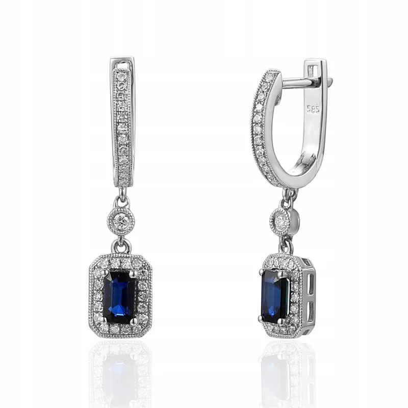 KOLCZYKI SZAFIR DIAMENTY BIAŁE ZŁOTO PRÓBA 585 ( NA ZAMÓWIENIE )