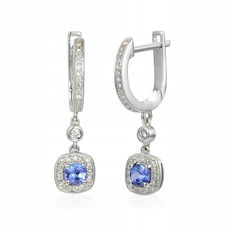 KOLCZYKI TANZANIT DIAMENTY BIAŁE ZŁOTO PRÓBA 585 ( NA ZAMÓWIENIE )