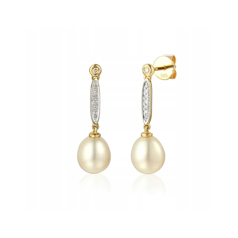 ZŁOTE KOLCZYKI 585 PERŁY DIAMENTY ( NA ZAMÓWIENIE )
