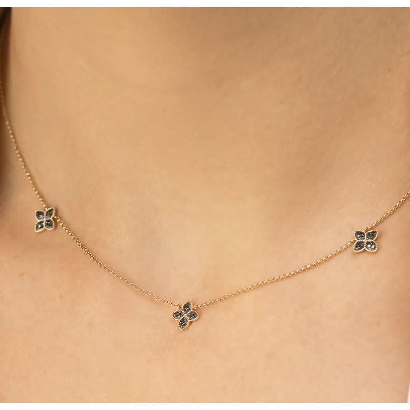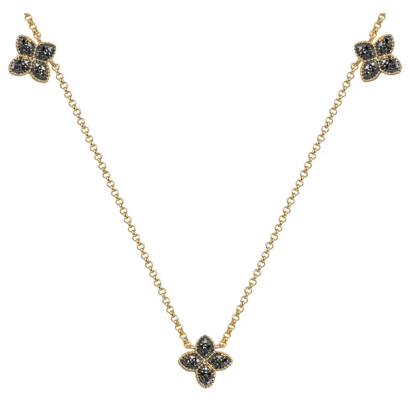 Złoty Elegancki Naszyjnik 585 Czarne Diamenty