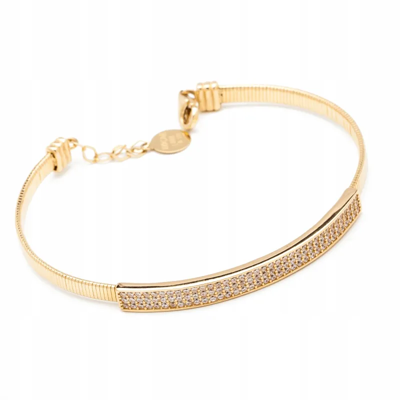 Złota Bransoletka Wysadzana Cyrkoniami Piękny Wzór