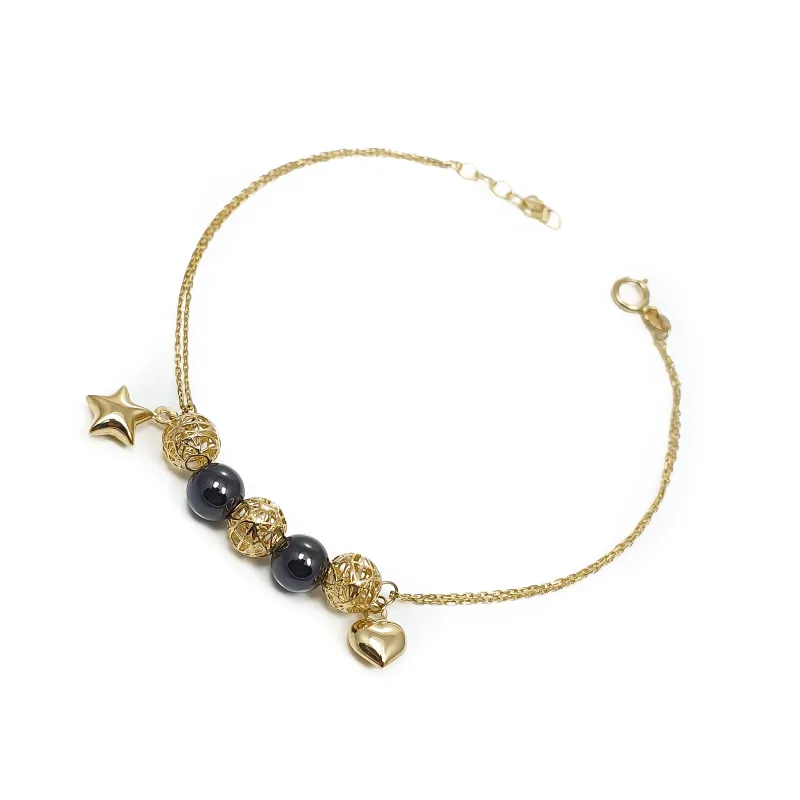 ZŁOTA BRANSOLETKA KULKI SERCE GWIAZDKA