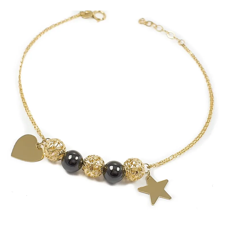 Złota 14k Modna Bransoletka z Kółkami i Gwiazdkami id B908