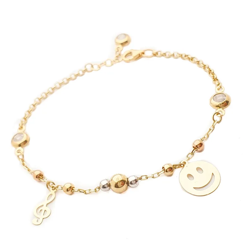 Złota Bransoletka Buźka Klucz Wiolinowy Cyrkonie