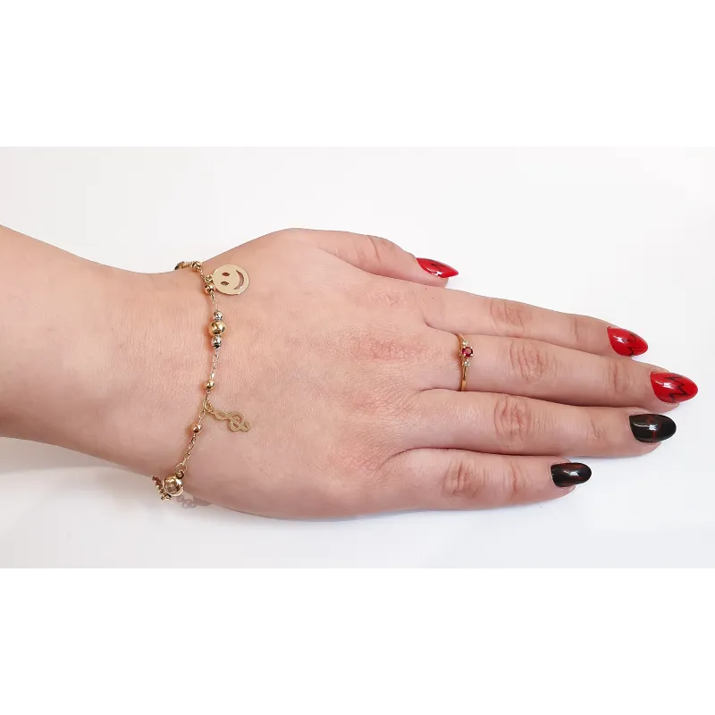 Złota 14k Modna Bransoletka z Kółkami i Gwiazdkami id B908