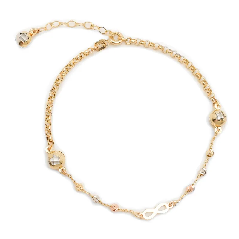 Złota 14k Modna Bransoletka z Kółkami i Gwiazdkami id B908
