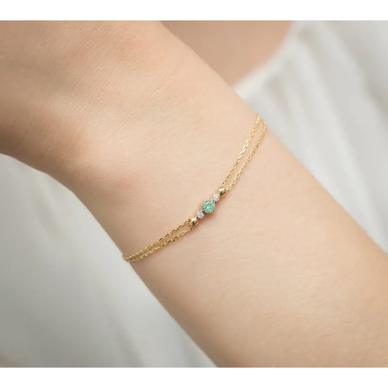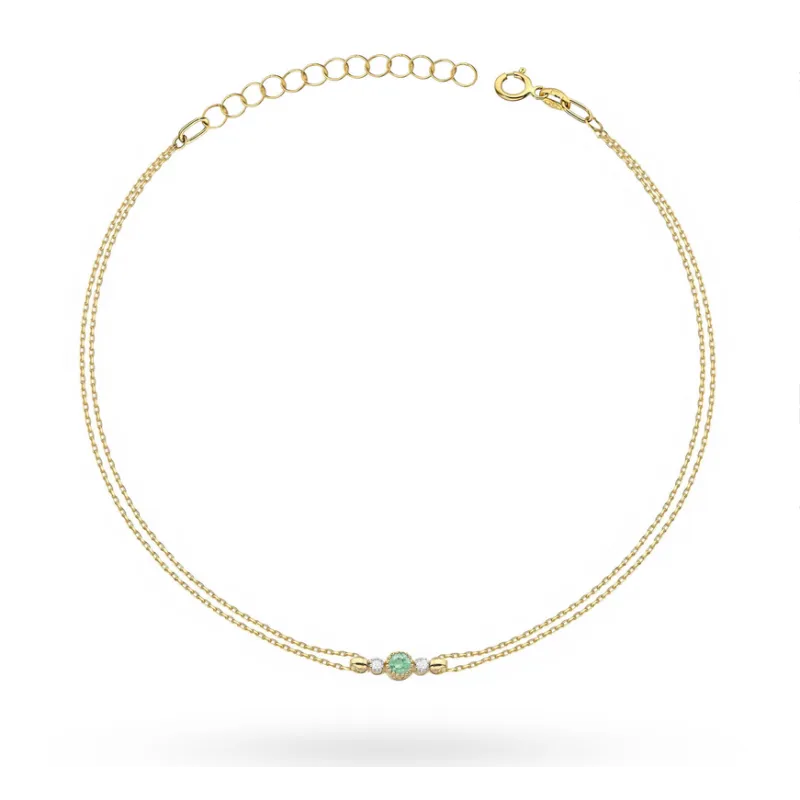 Złota Bransoletka 585 Szmaragd i Brylanty
