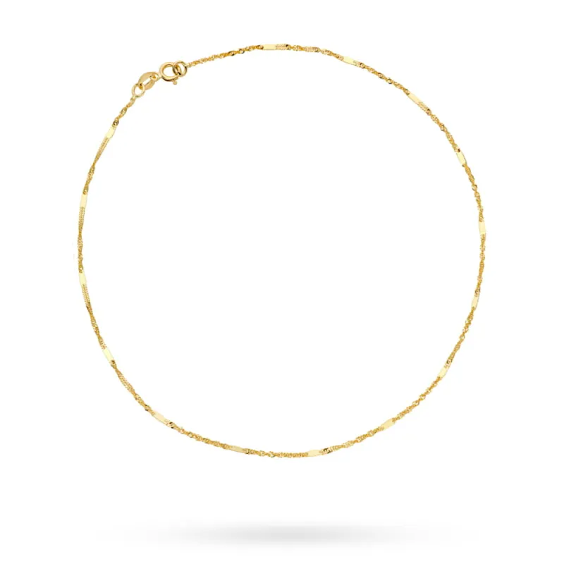 Złota Bransoletka 585 na Nogę Singapur z Blaszkami Diamentowany 25cm