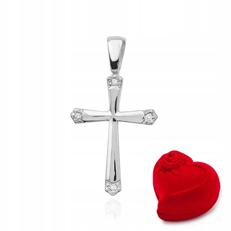Złota Zawieszka Krzyżyk Brylanty Białe Złoto 0,02ct (na