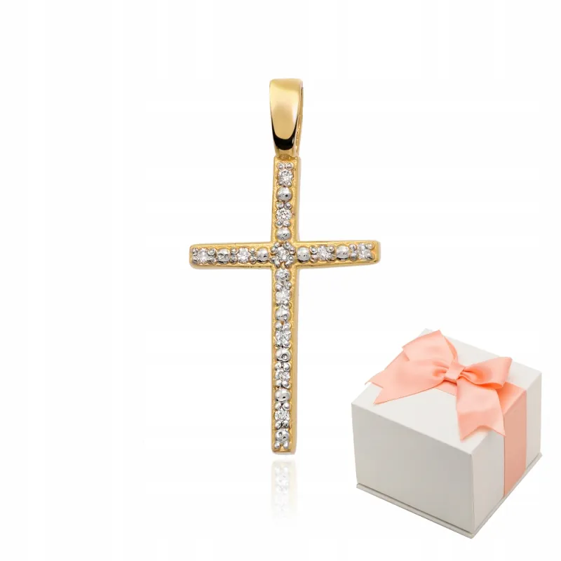 Złota 585 Zawieszka Krzyżyk Brylant 0,05ct (na