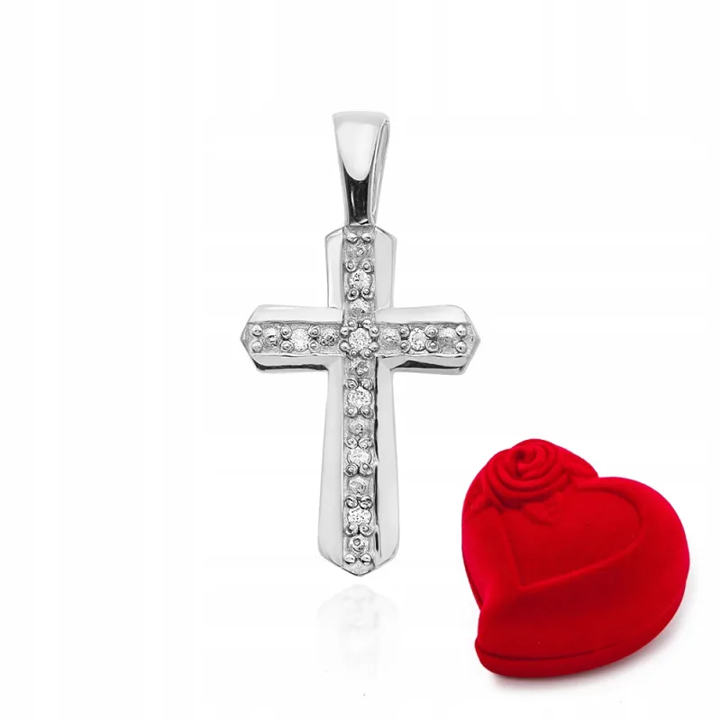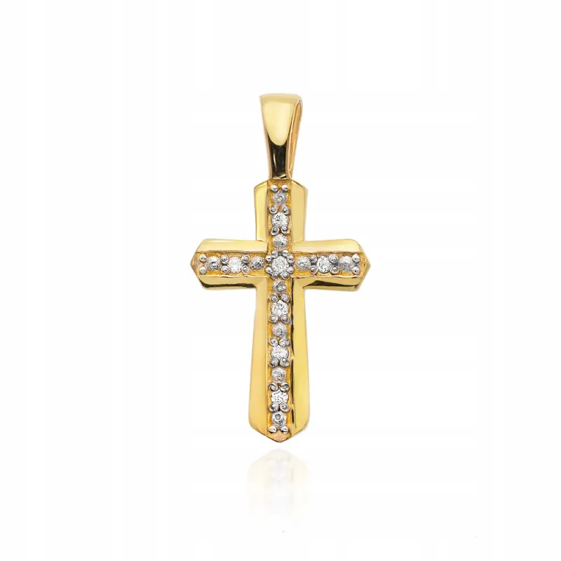 Złota Zawieszka w Białym Złocie Krzyżyk Brylanty (na