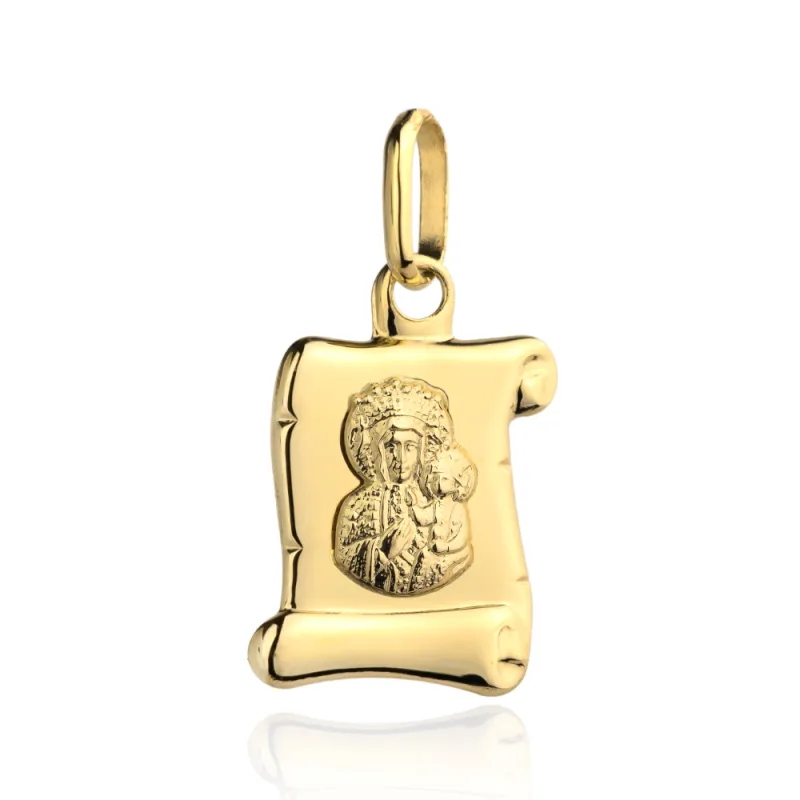 Złoty Medalik 585 Papirus Matka Boska Częstochowska z Dzieciątkiem