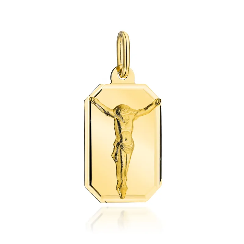 Złota Blaszka 585 z Ukrzyżowanym Jezusem GRAWER