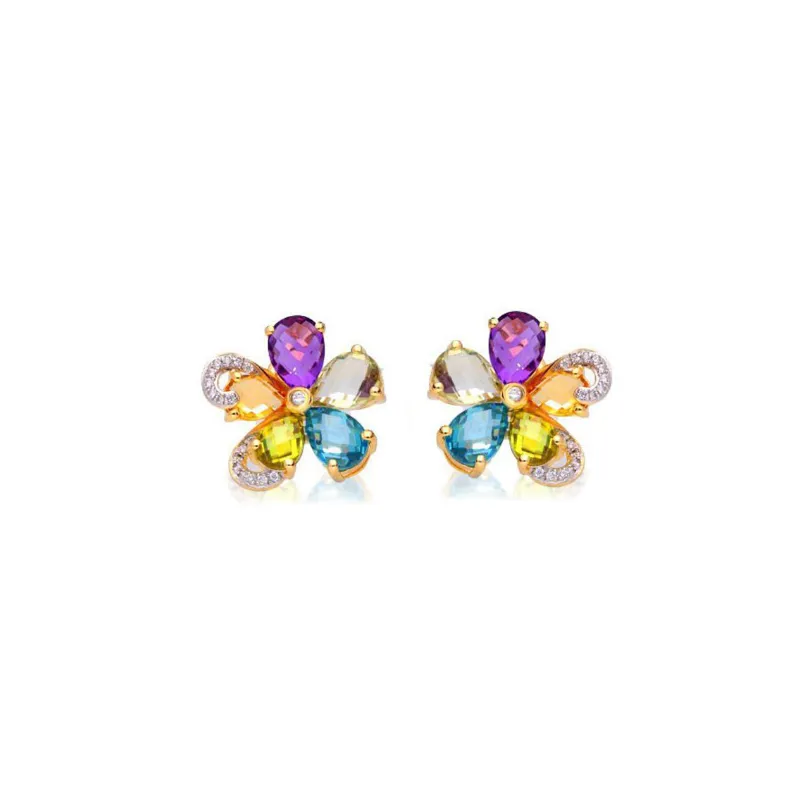 Złote Kolczyki Kwiatki Kolorowe Kamienie Brylanty ( NA ZAMÓWIENIE )