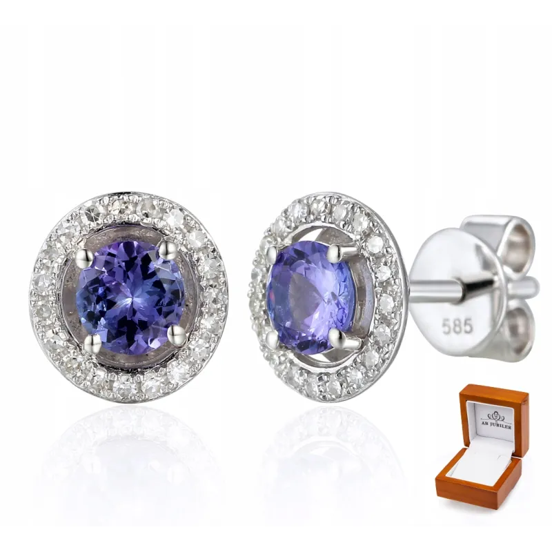 KOLCZYKI TANZANIT DIAMENTY BIAŁE ZŁOTO PRÓBA 585 ( NA ZAMÓWIENIE )