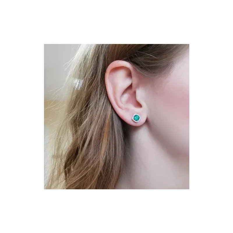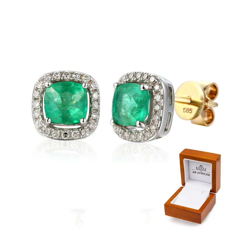 ZŁOTE KOLCZYKI SZMARAGD DIAMENTY PRÓBA 585 SZTYFT ( NA ZAMÓWIENIE )