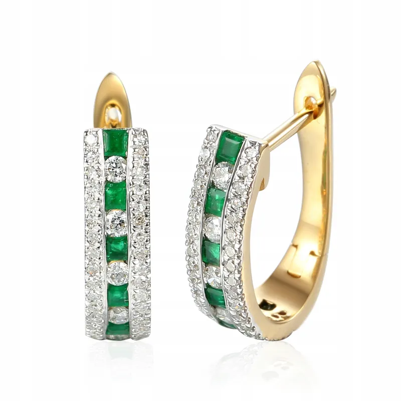 ZŁOTE KOLCZYKI SZMARAGDY DIAMENTY PRÓBA 585