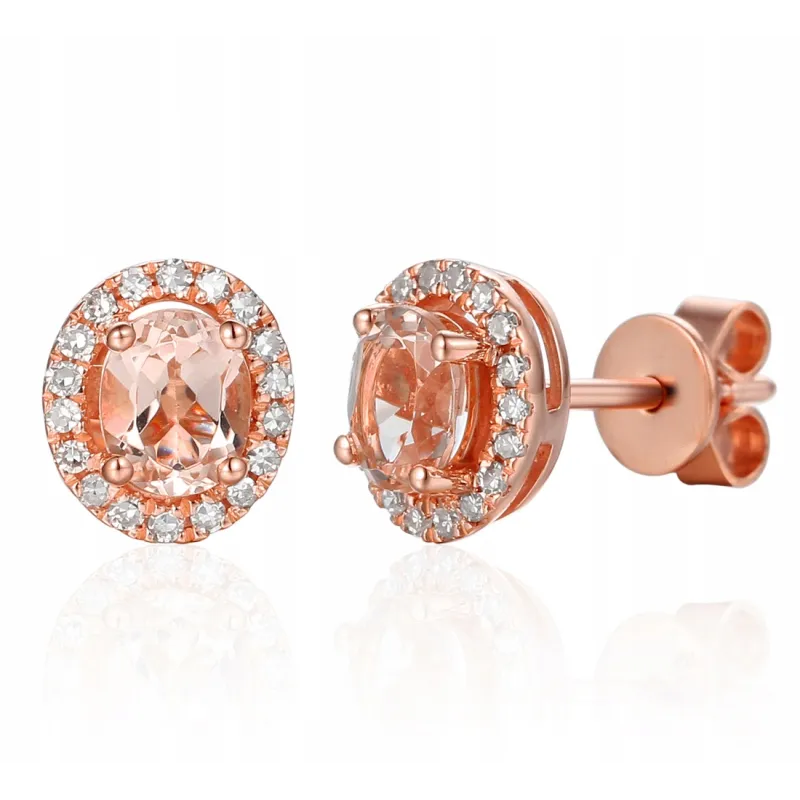 KOLCZYKI 585 MORGANIT DIAMENTY RÓŻOWE ZŁOTO SZTYFT ( NA ZAMÓWIENIE )
