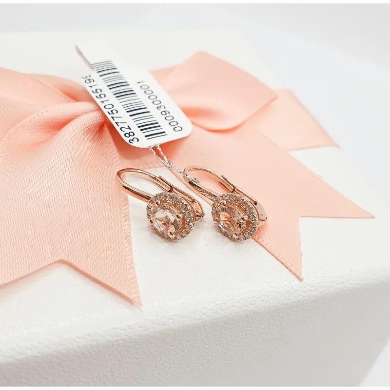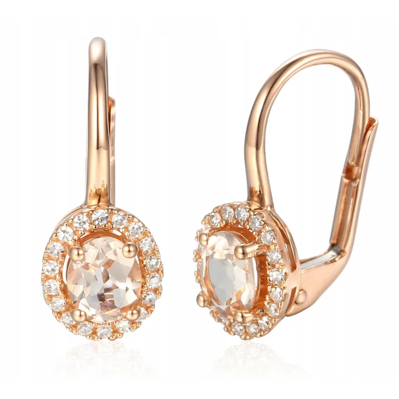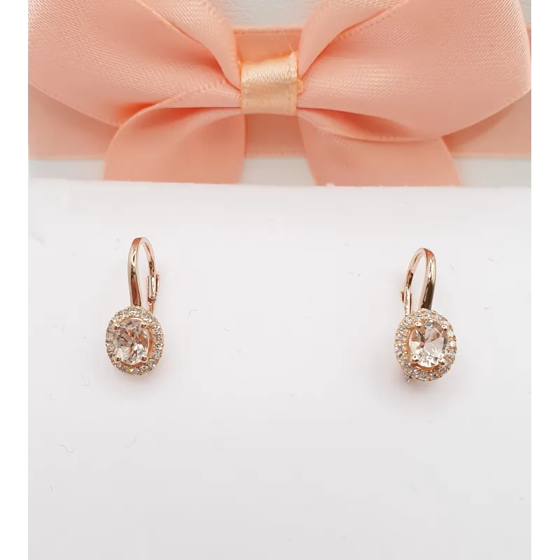 RÓŻOWY 585 KOLCZYKI MORGANIT DIAMENTY PATENTKA ( NA ZAMÓWIENIE )