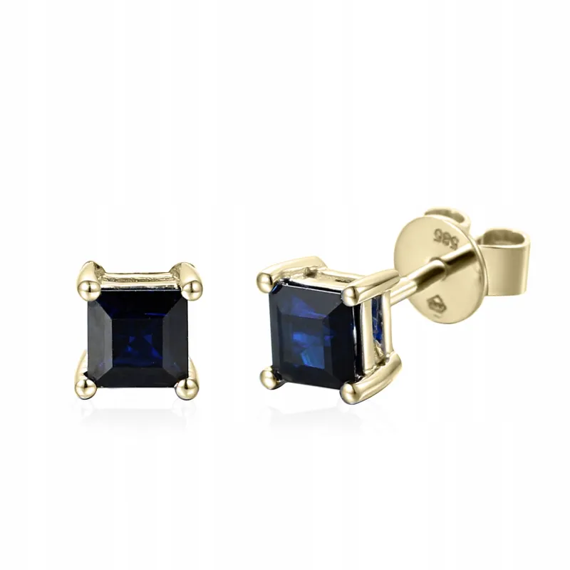 ZŁOTE KOLCZYKI SZAFIR PRÓBA 585 SZTYFT PREZENT ( NA ZAMÓWIENIE )