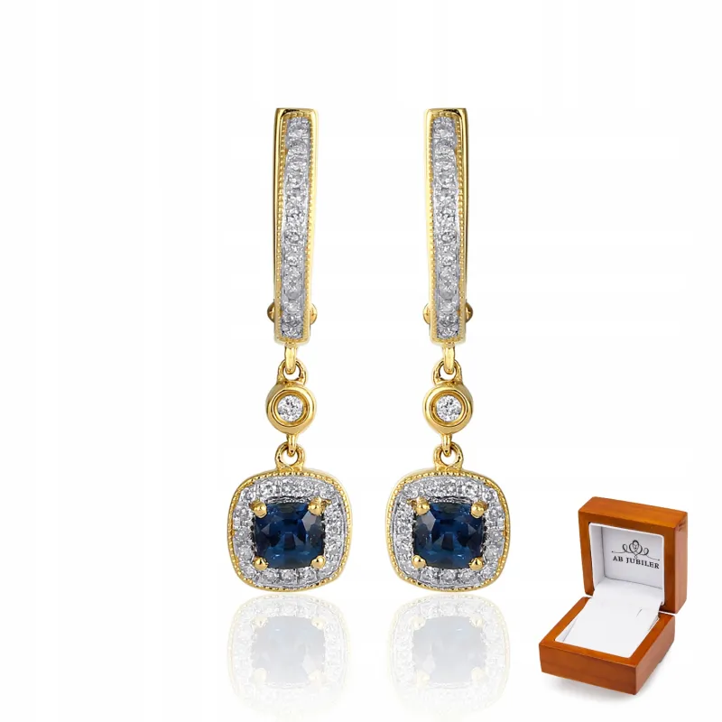 ZŁOTE 585 KOLCZYKI SZAFIR I DIAMENTY NA PREZENT ( NA ZAMÓWIENIE )