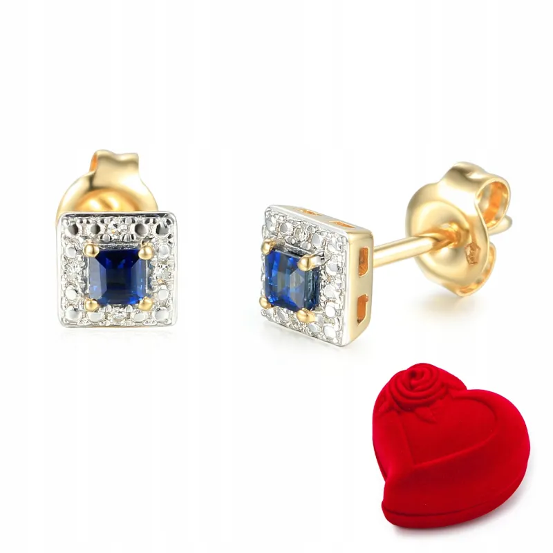 ZŁOTE 585 KOLCZYKI SZAFIR DIAMENTY SZTYFT PREZENT ( NA ZAMÓWIENIE )