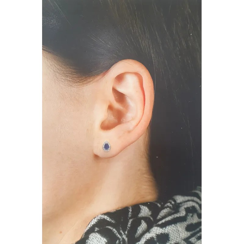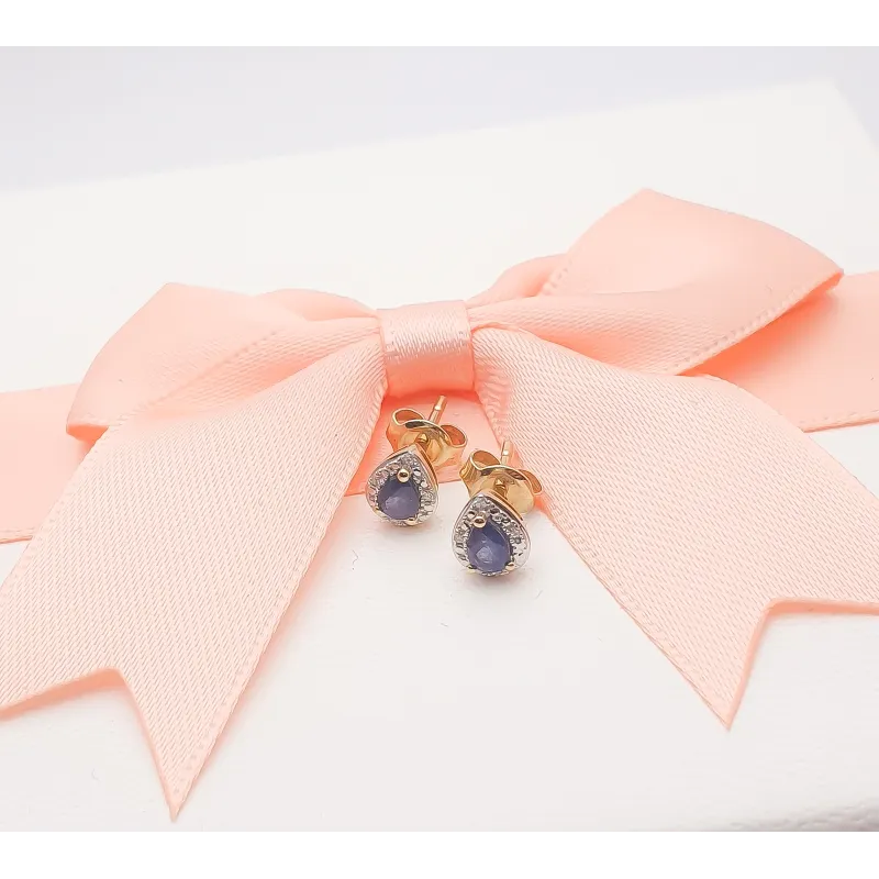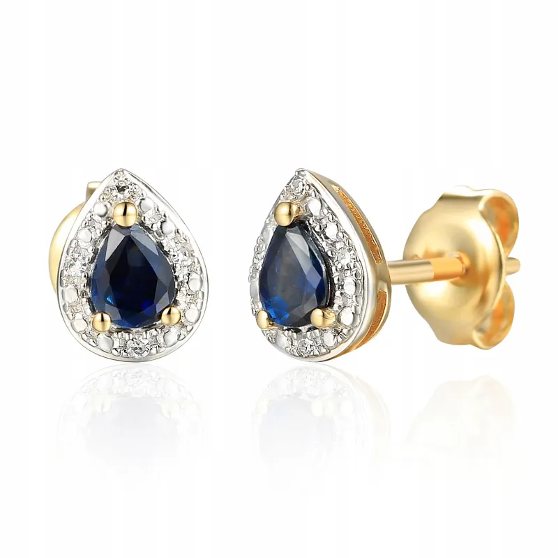 ZŁOTE 585 KOLCZYKI ŁEZKI SZAFIRY I DIAMENTY