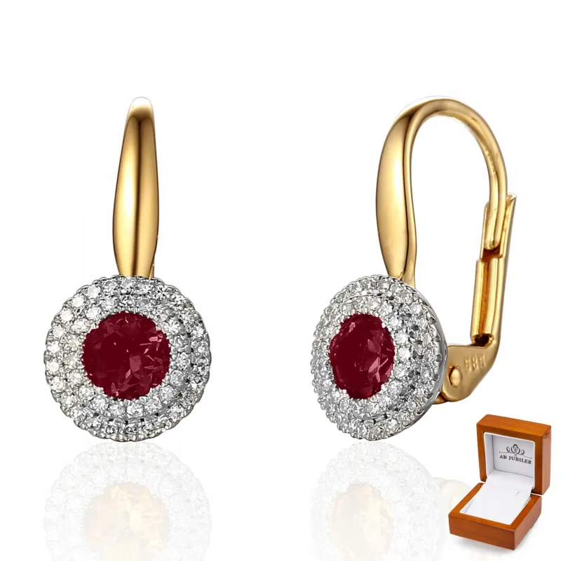 ZŁOTE 585 KOLCZYKI RUBINY I DIAMENTY PATENTKA