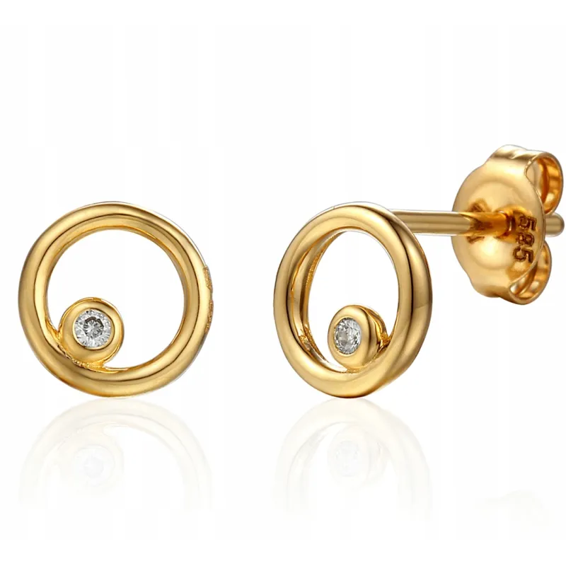 ZŁOTE 585 KOLCZYKI KÓŁKA Z DIAMENTAMI SZTYFT