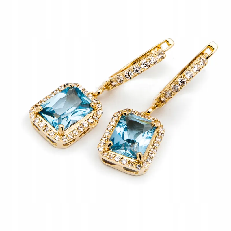 Złote Kolczyki Wiszące Akwamaryn i Cyrkonia