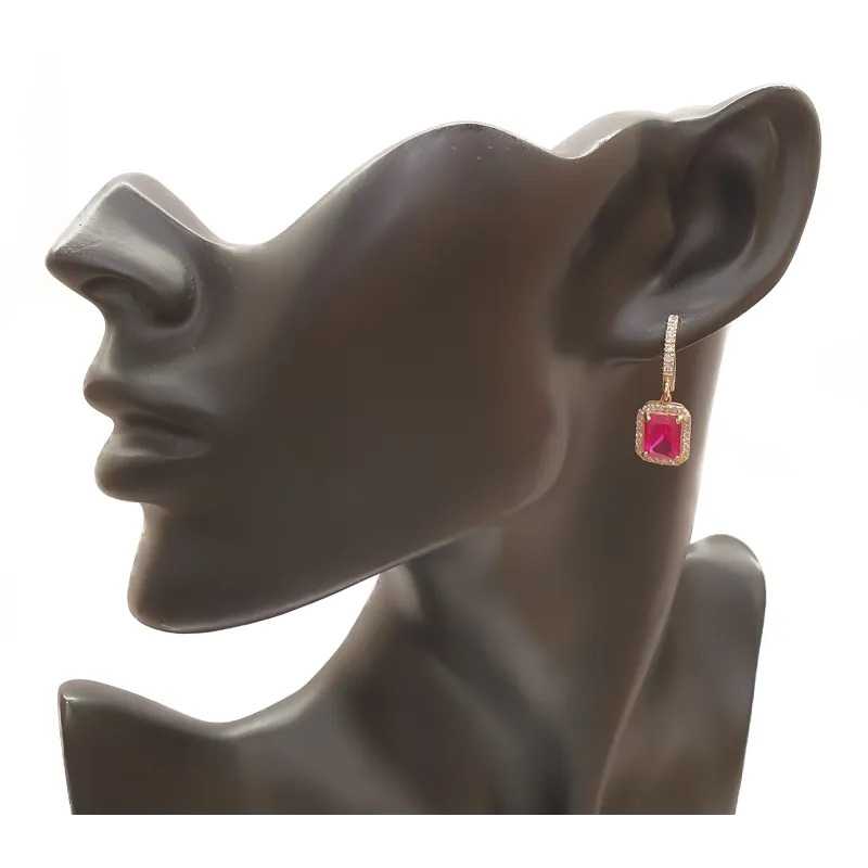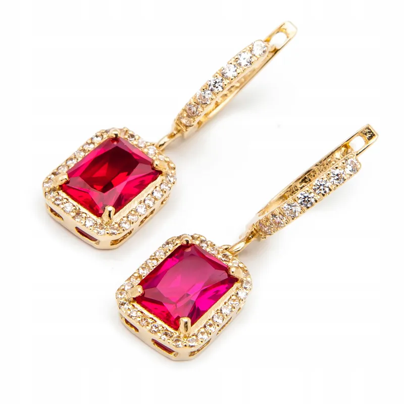 ZŁOTE KOLCZYKI WISZĄCE RUBIN ( CYRKONIA BARWIONA )
