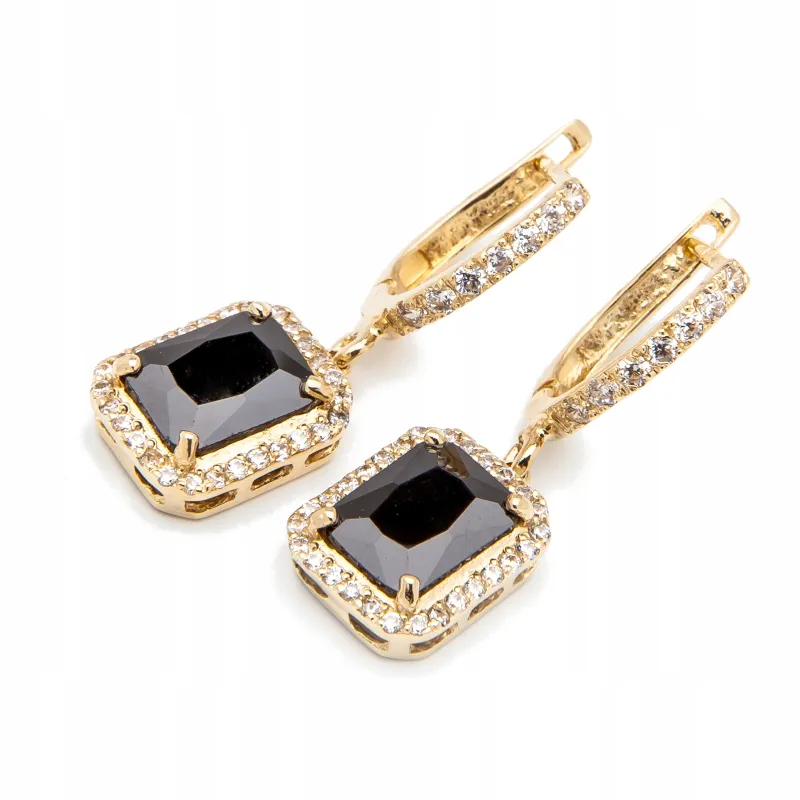Złote Kolczyki Wiszące z Czarną Cyrkonią