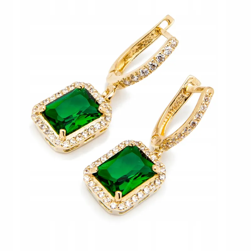 ZŁOTE 585 KOLCZYKI WISZĄCE SZMARAGD ( CYRKONIA BARWIONA)