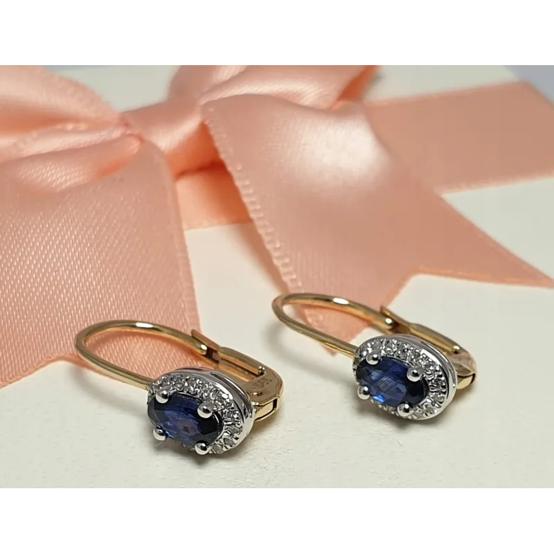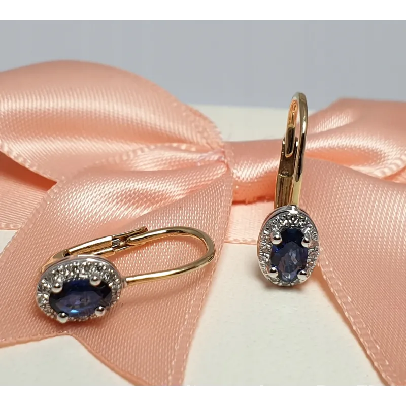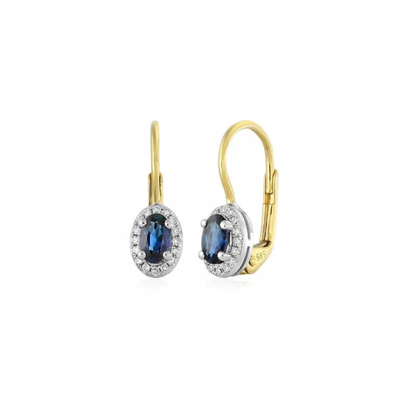 ZŁOTE 585 KOLCZYKI SZAFIR DIAMENTY PATENTKA