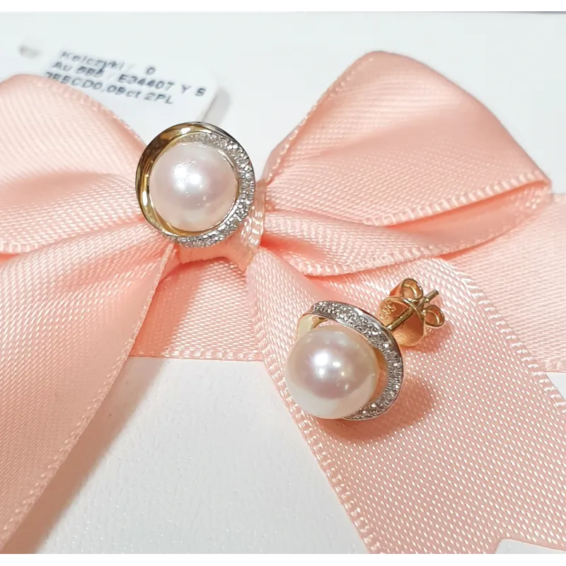 ZŁOTE 14K KOLCZYKI PERŁY DIAMENTY ( NA ZAMÓWIENIE )