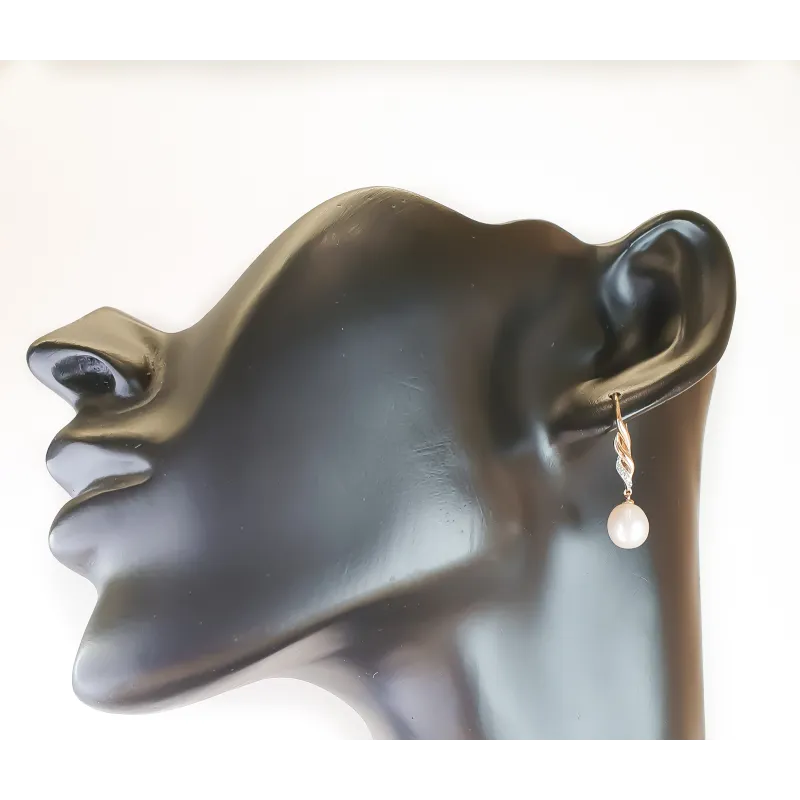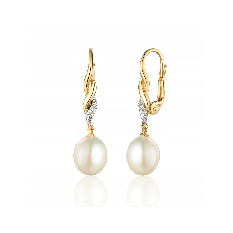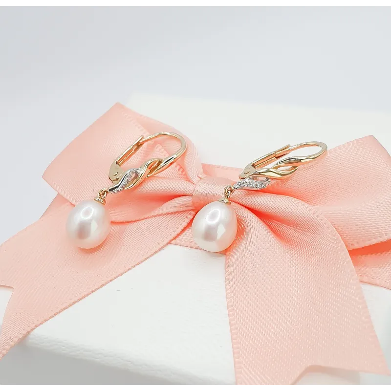 ZŁOTE KOLCZYKI 585 PERŁY I DIAMENTY