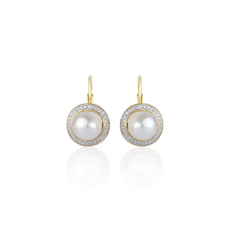 ZŁOTE 14K KOLCZYKI PERŁY DIAMENTY ( NA ZAMÓWIENIE )