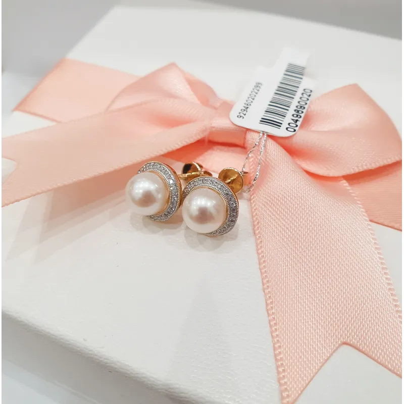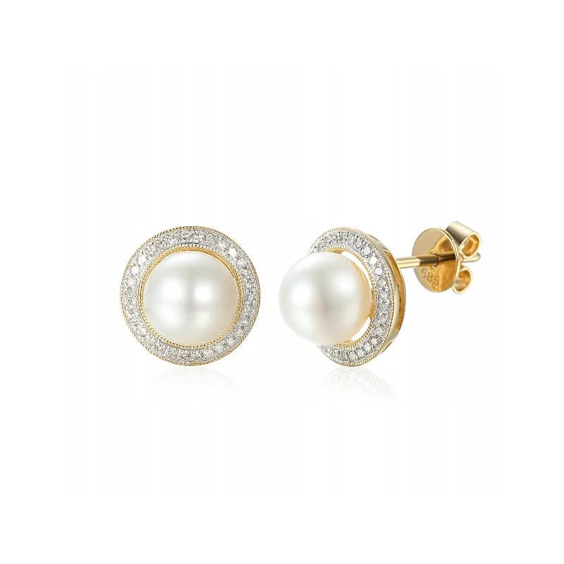 ZŁOTE 585 KOLCZYKI PERŁY DIAMENTY ( NA ZAMÓWIENIE )