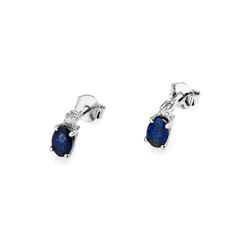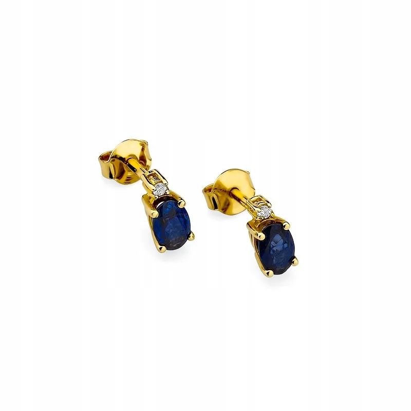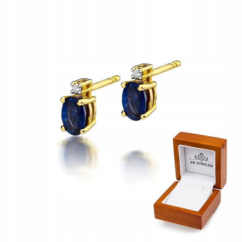 Złote 585 Kolczyki z Szafirem i Diamentem (na zamówienie)