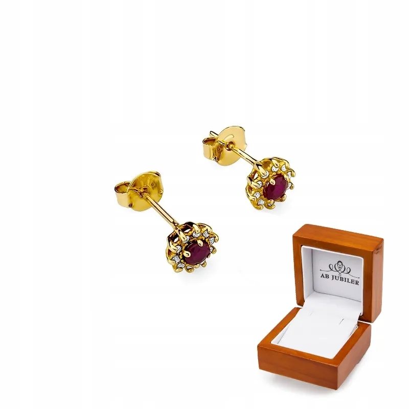 Złote 585 Kolczyki z Rubinem i Diamentami (na zamówienie)