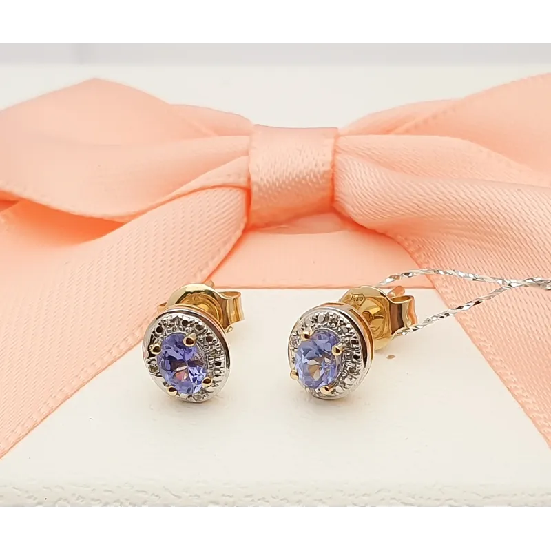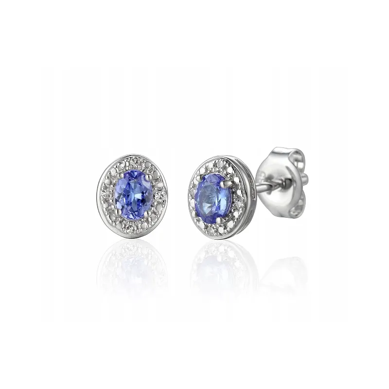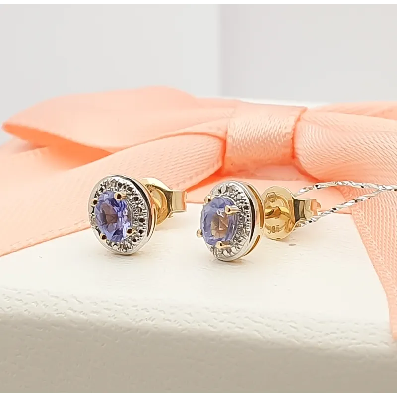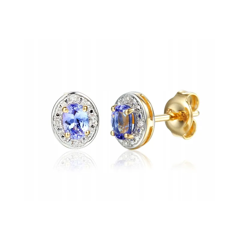 ZŁOTE KOLCZYKI TANZANIT DIAMENT 585 SZTYFT PREZENT ( NA ZAMÓWIENIE )