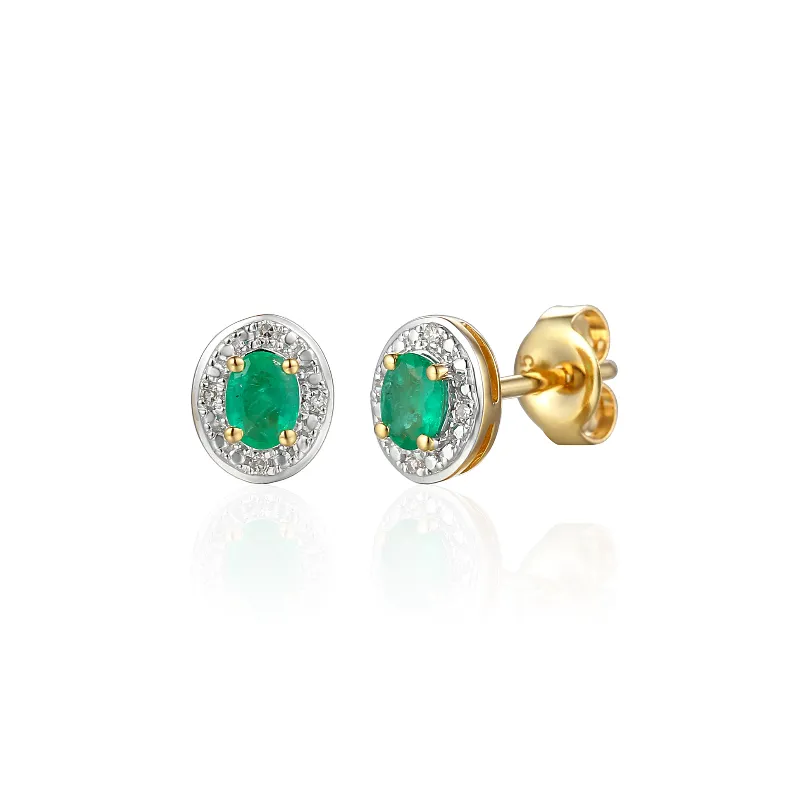 ZŁOTE KOLCZYKI SZMARAGD DIAMENTY PRÓBA 585 SZTYFT ( NA ZAMÓWIENIE )