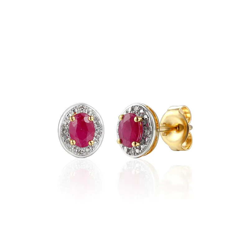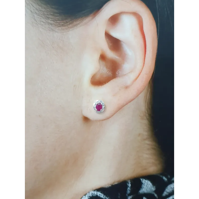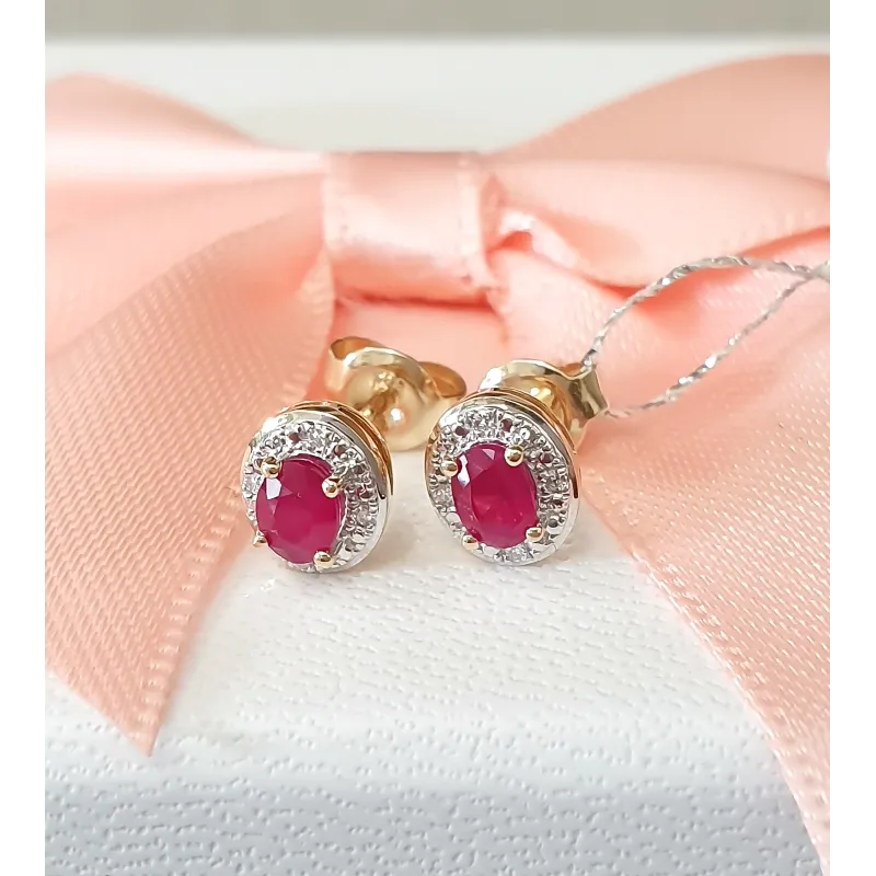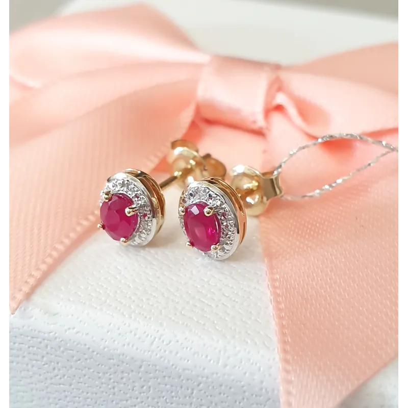 ZŁOTE KOLCZYKI RUBIN DIAMENTY PRÓBA 585 SZTYFT