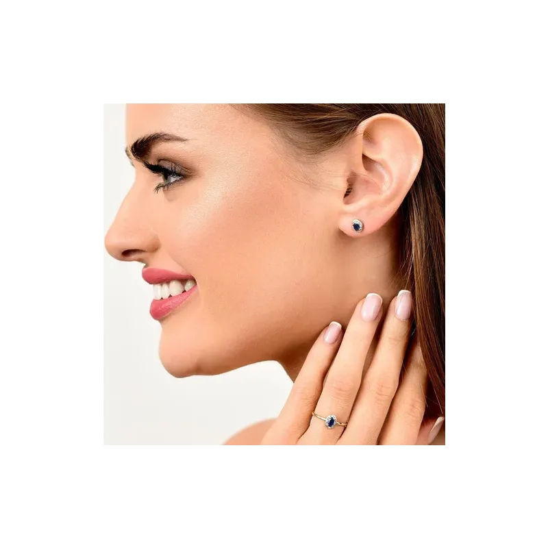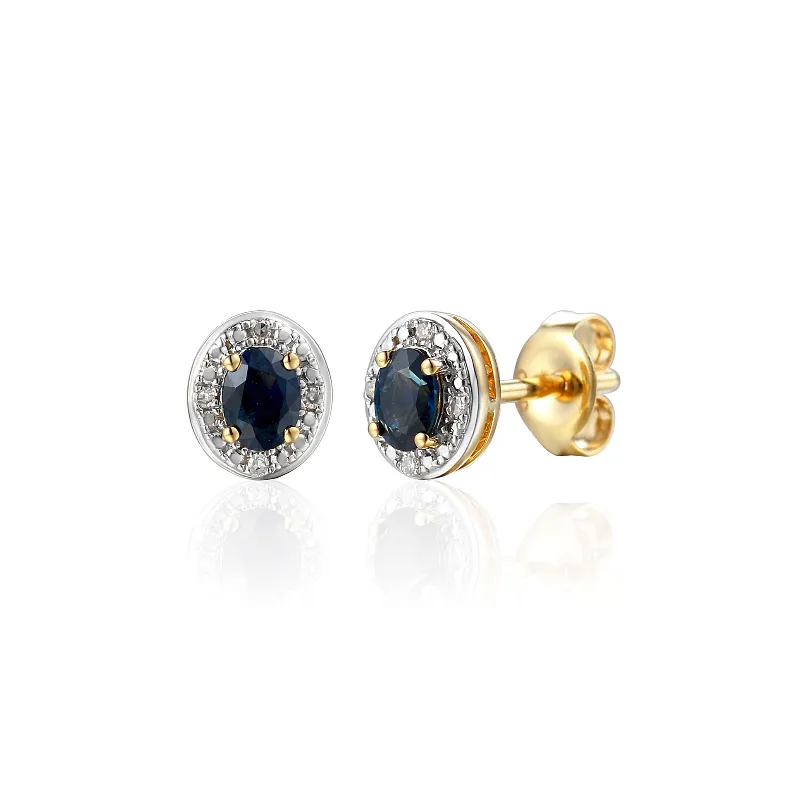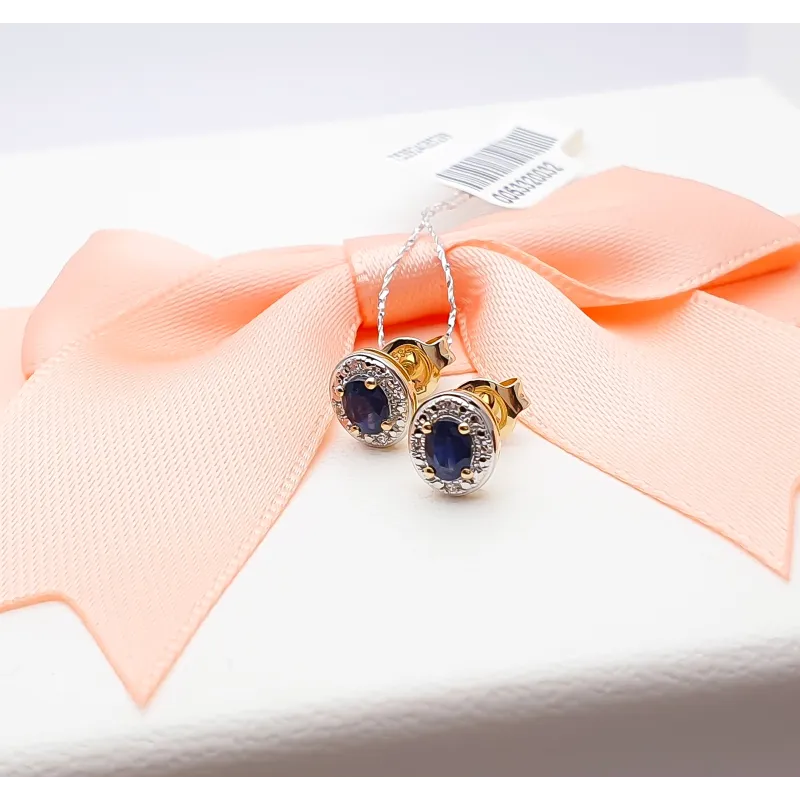 ZŁOTE KOLCZYKI Z SZAFIREM I DIAMENTAMI