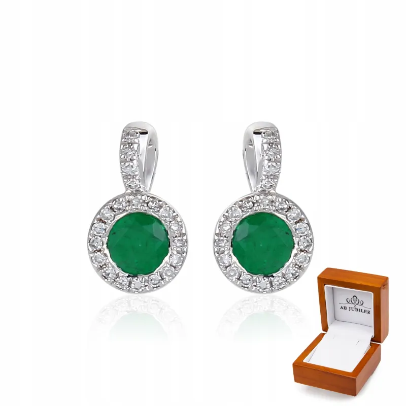 ZŁOTE KOLCZYKI NA SZTYFCIE ZE SZMARAGDEM I DIAMENTAMI IDEALNE NA PREZENT ( NA ZAMÓWIENIE )