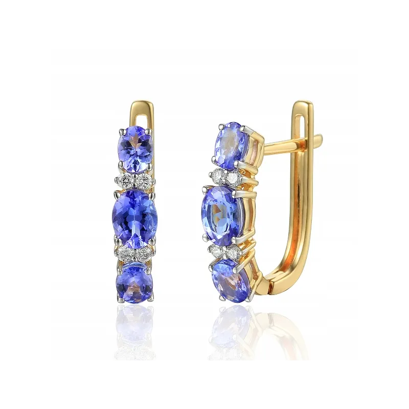 Złote 585 Kolczyki Tanzanity i Diamenty na Prezent ( NA ZAMÓWIENIE )