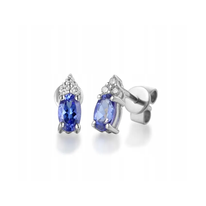 KOLCZYKI BIAŁE ZŁOTO TANZANIT DIAMENTY SZTYFT ( NA ZAMÓWIENIE )