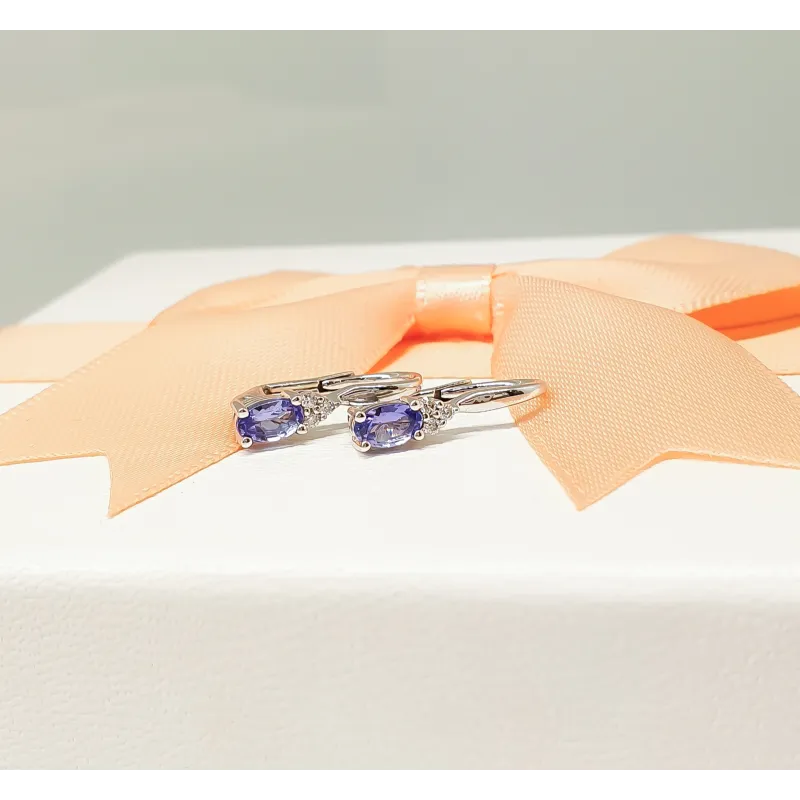 KOLCZYKI Z TANZANITEM I DIAMENTAMI BIAŁE ZŁOTO 585 ( NA ZAMÓWIENIE )