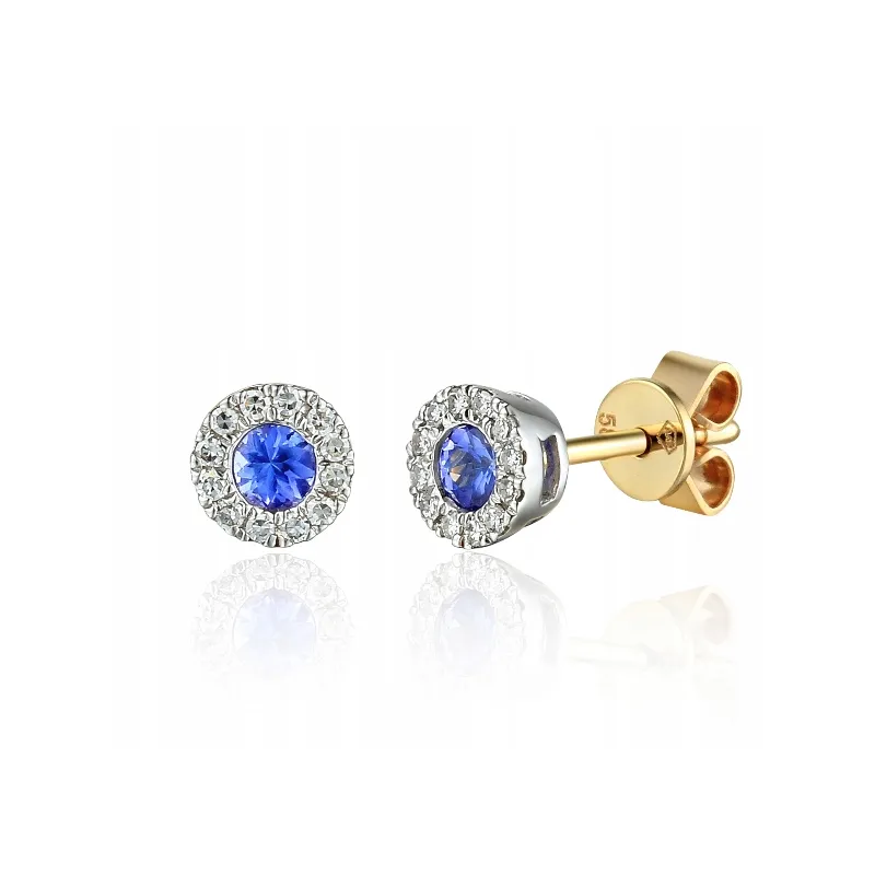 KOLCZYKI 585 TANZANIT DIAMENTY ŻÓŁTO BIAŁE ZŁOTO ( NA ZAMÓWIENIE )