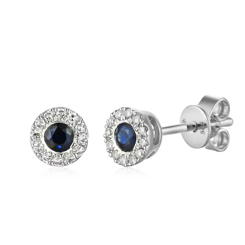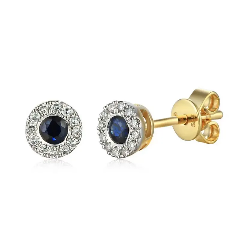 ZŁOTE KOLCZYKI SZAFIR DIAMENTY SZTYFT PRÓBA 585 ( NA ZAMÓWIENIE )